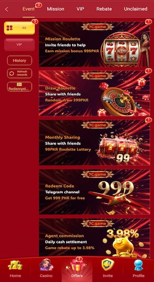 7C Game allows users to join card competitions plus reel activities that provide real cash rewards.